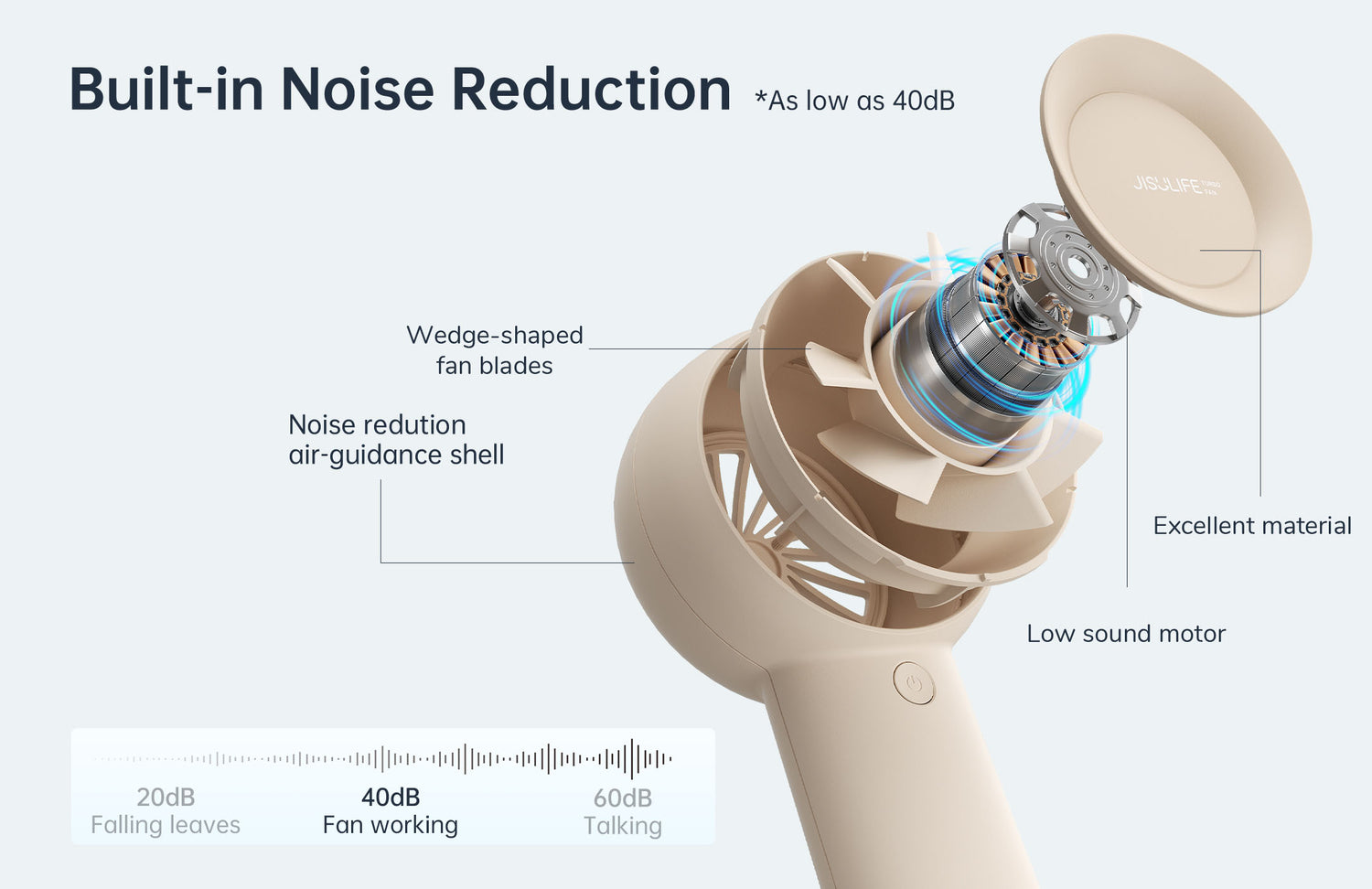 Powerful & Energy-efficient: JISULIFE Personal Handheld Fan features a high-performance motor and optimized air duct to improve wind power while minimizing noise. Compared to other handheld fans, it has a faster speed (6100 r/min) and stronger wind (4.8 m/s).