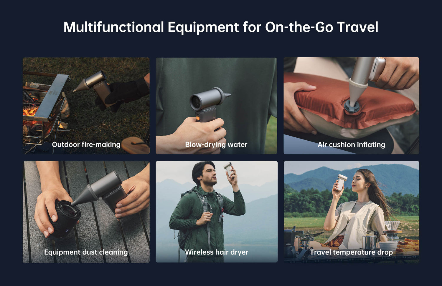 - Multifunctional Design: Apart from being a handheld fan, it comes with three multifunctional accessories to meet various usage scenarios. Additionally, it has a built-in LED light for emergency illumination.